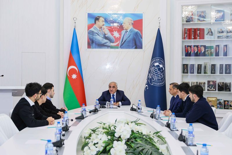 Görüşün sonunda rektor Ədalət Muradov tələbələri Fəxri Fərmanla təltif edib.