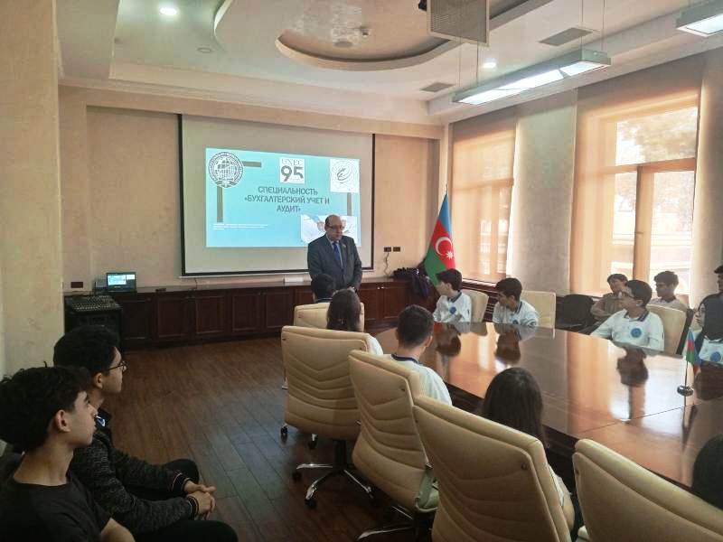 UNEC Rus İqtisad Məktəbinin (RİM) nümayəndələri direktor müavini Anar Eyyubov və “Tətbiqi iqtisadiyyat” kafedrasının dosenti Rauf Salayev abituriyentlərlə iş proqramı çərçivəsində 6 nömrəli məktəb-liseydə abituiyentlərlə görüş keçirib.