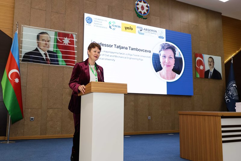 Riqа Texniki Universitetinin professoru Tatyana Tambovceva “Dairəvi iqtisadiyyat üçün beton sənayesində sənaye simbiozu imkanlarının genişləndirilməsi” mövzusunda çıxış edərək, tikinti sektorunda ekoloji yükün azaldılması istiqamətində tətbiq olunan innovativ həllərdən bəhs edib.