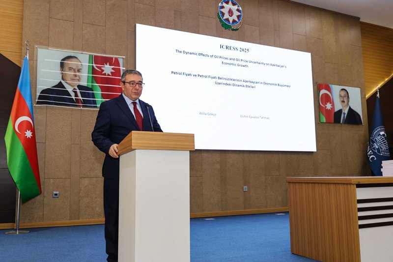 Universitetin digər professoru Atilla Gökçe “Neft qiyməti və neft qiyməti qeyri-müəyyənliklərinin Azərbaycanın iqtisadi artımına dinamik təsirləri” mövzusunda apardığı tədqiqatların nəticələrini diqqətə çatdırıb.