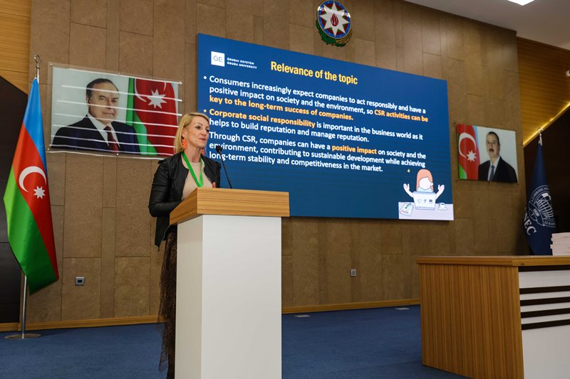 İlk olaraq Obuda Universitetinin Biznes və menecment fakültəsinin dekanı, professor Monica Grai-Fodor “İstehlakçıların korporativ sosial məsuliyyətin qiymətləndirilməsi” mövzusunda təqdimat edərək, şirkətlərin sosial məsuliyyət təşəbbüslərinin istehlakçı davranışına təsirlərini təhlil edib.