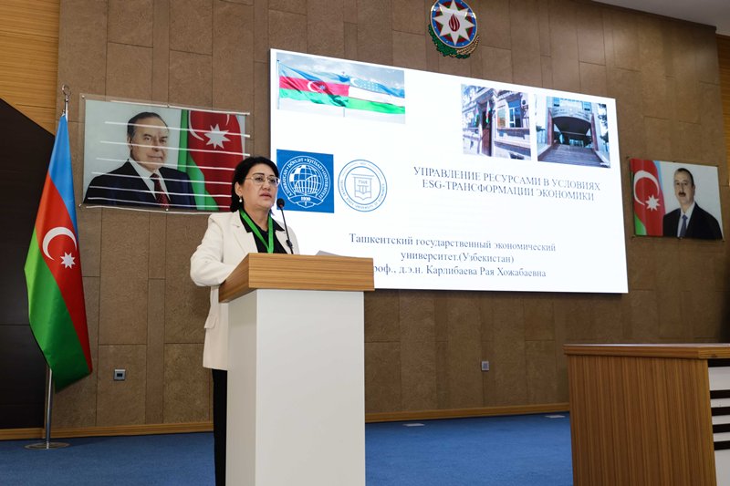 Daşkənd Dövlət İqtisad Universitetinin professoru Raya Karlibayeva “ESG iqtisadiyyat transformasiyası şəraitində resursların idarə edilməsi” adlı məruzəsində dayanıqlı inkişaf çərçivəsində resurs bölgüsü və idarəetmə mexanizmlərinə toxunub.
