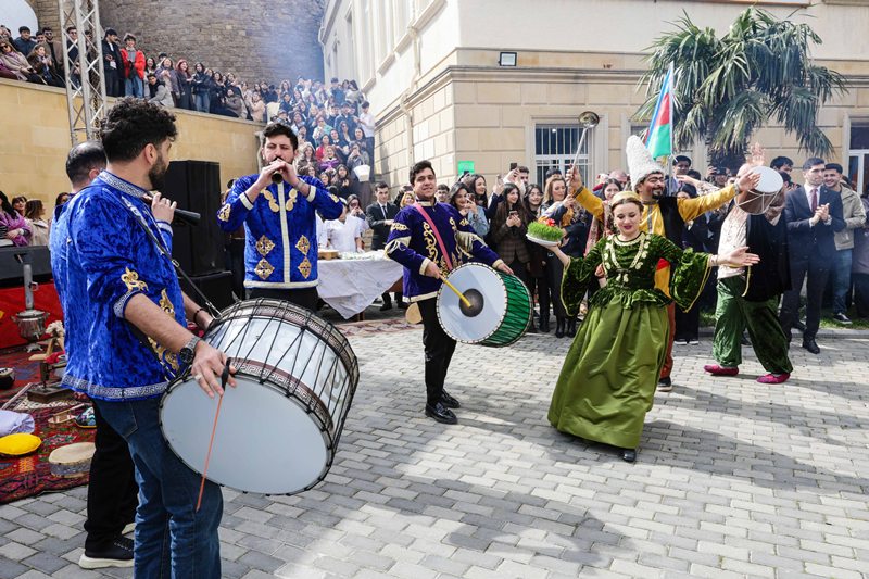 Əcnəbi tələbələrin də böyük maraqla qoşulduğu şənlik çərçivəsində bayram tonqalının ətrafında yallı gedilərək birlik və həmrəylik nümayiş etdirilib. Tədbir musiqiçilərin ifasında səsləndirilən şən musiqi nömrələri ilə davam edib.