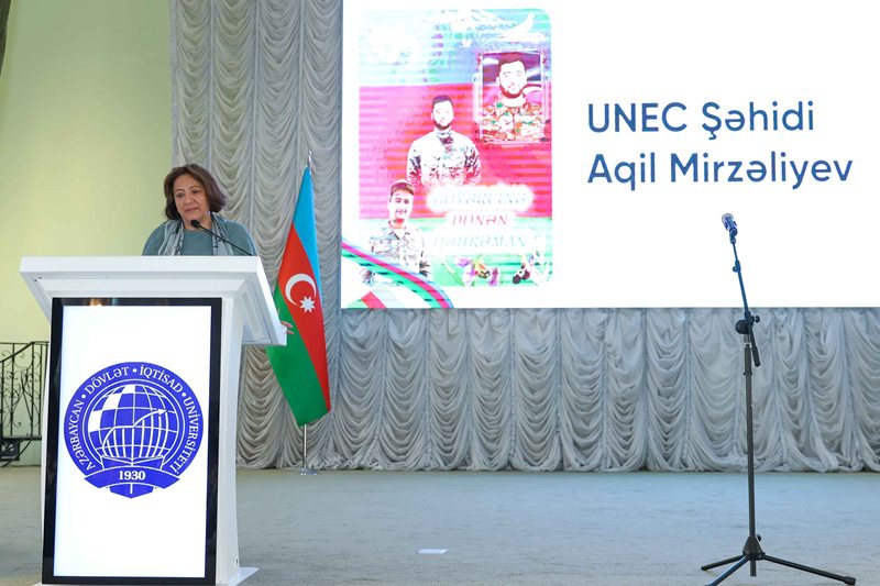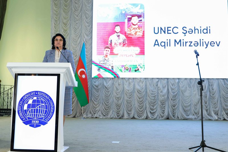 Azərbaycan Dövlət İqtisad Universitetində (UNEC) Vətən müharibəsində şəhidlik zirvəsinə ucalmış UNEC məzunu Aqil Mirzəliyevin xatirəsinə həsr olunmuş “Göyərçinə dönən qəhrəman” kitabının təqdimatı keçirilib.