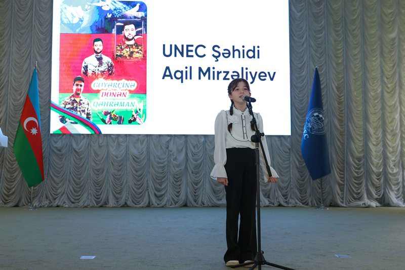 UNEC-də şəhid Aqil Mirzəliyevə həsr olunan “Göyərçinə dönən qəhrəman” kitabının təqdimatı keçirilib