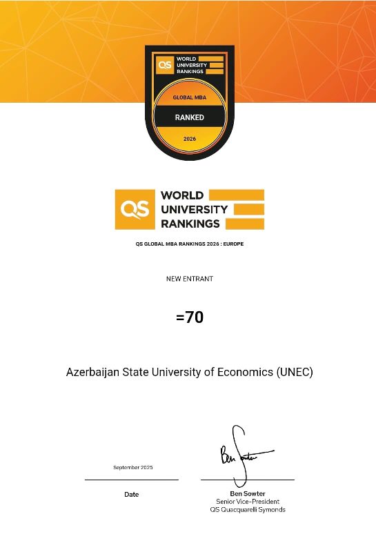 İlk dəfə olaraq, dünyanın aparıcı universitetlərinin yer aldığı QS MBA Rankings 2026 reytinqinə daxil olub.
