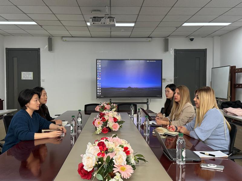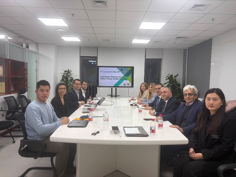 The meetings were attended on behalf of UNEC by Vice-Rector for Academic Affairs Geray Musayev, Vice-Rector for Economic Affairs Nasimi Ismayilov, Deputy Director of the Center for Methodology and Quality Assurance in Teaching Navai Aliyev, Director of the Department of Foreign Languages Aysel Khalilova, and Deputy Director for Academic Affairs of the Department of Foreign Languages and Head of the Center for Foreign Language Teaching Aynur Mirzayeva. Beijing Foreign Studies University was represented by Vice-Rector Zhao Gang, Dean of the School of International Business Li Sifei, Dean of the School of Asian Studies Su Yingying, Director of the Artificial Intelligence and Human Languages Laboratory Li Zuowen, Vice-Dean of the School of Chinese Language and Literature Wang Zulei, and Head of the Department of Azerbaijani Language Agshin Aliyev.