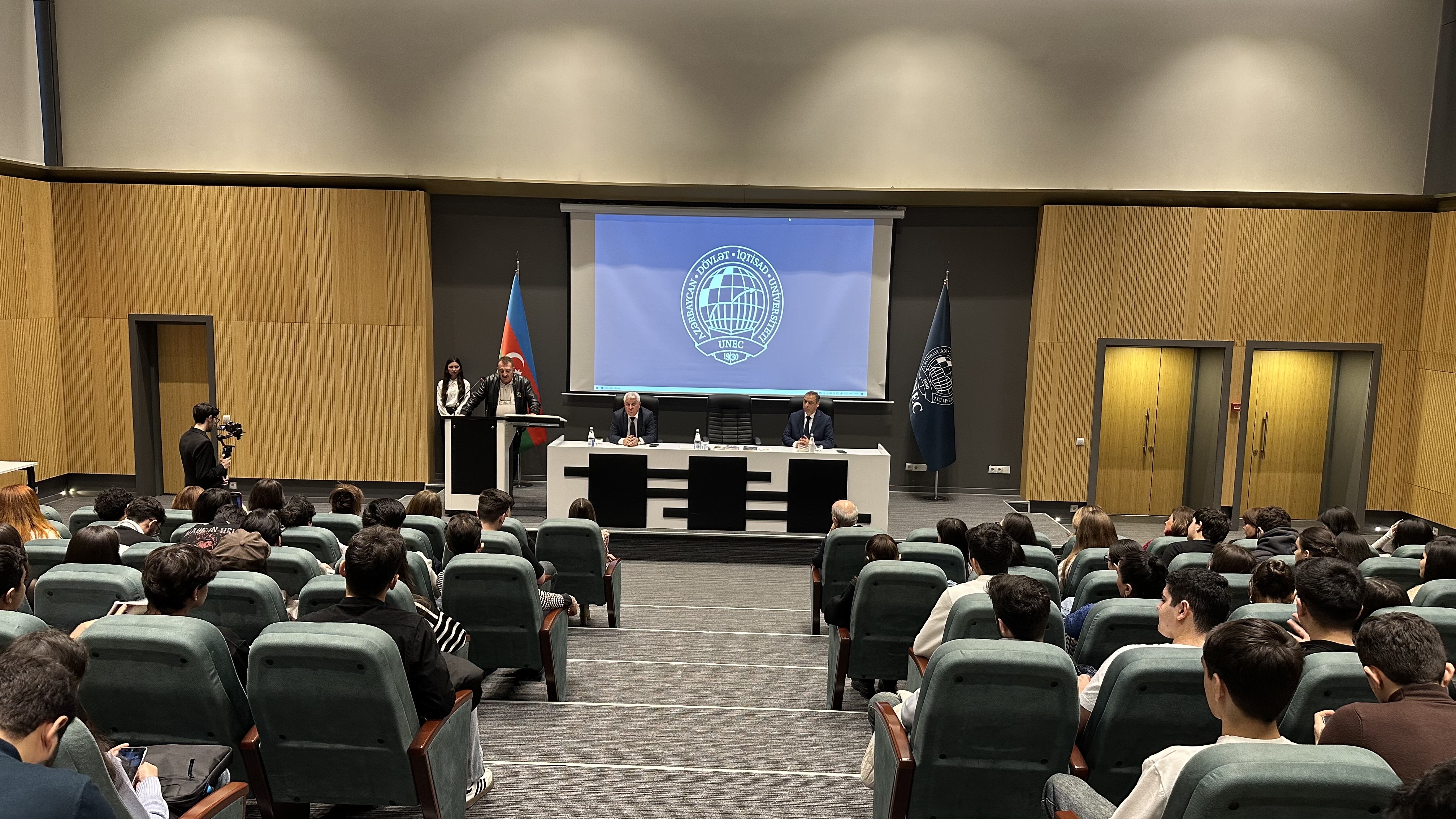 В UNEC состоялась встреча академика Мухтара Иманова и известного поэта Рустама Бехруди со студентами.